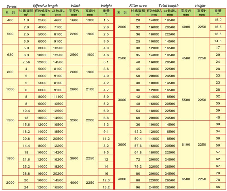 Basic technical parameters of DU rubber belt vacuum filter: